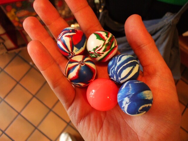 Princess Sunshine spent more on this trip on bouncy balls than I did on gasoline for the car. To her credit, she got the color of ball she wanted, and about a half dozen more on top of that, culminating a three year hunt rather anticlimactically, I would think. Here is but a handful of her acquisitions. |