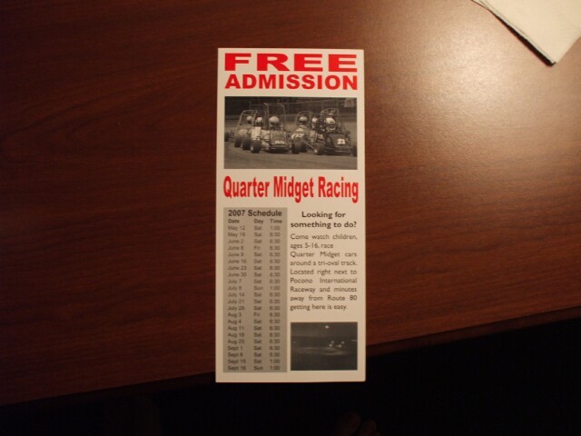 Once at the hotel, Princess Sunshine went to the lobby to look through the pamphlets and brochures to find out what pasttimes and attractions were available locally. This was the best she was able to find: Quarter Midget Racing. Not even full midgets! I think it was around this point that we realized just how badly we needed Doc Trauma to show up and clue us in as to what was worth visiting in the area. We'd already checked out the Stroud Mall, and I mentioned it as a possible destination whenever I wanted Princess Sunshine to give me the Hairy Eyeball (you know the kind of look I mean). Later, it was determined that the proper progression in Dungeons & Dragons terms goes: Human, Halfling, Quarter Midget, Kate Moss. I'm not sure I understand that one either, but there it is. |