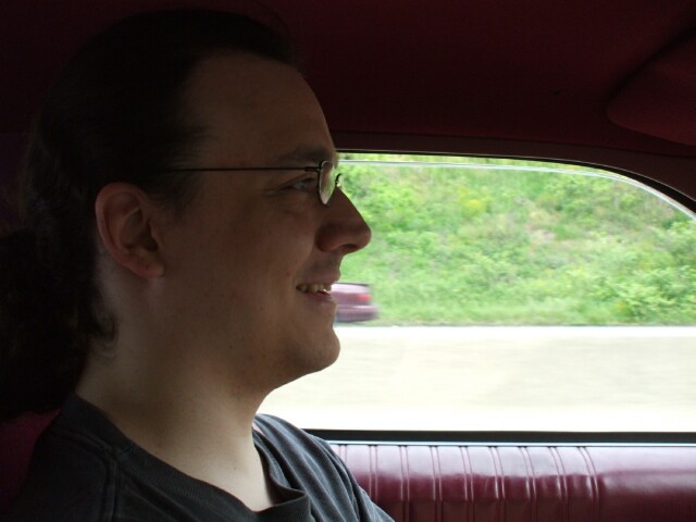 Princess Sunshine takes a rare picture of me with my eyes open. It probably helps to catch me while driving. When I'm behind the wheel my eyes are open nearly half the time. |