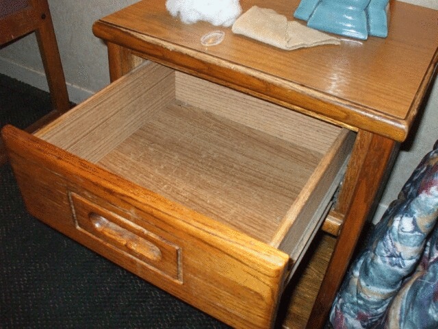 Okay, Bibles are technically optional, but I am dead certain that the chairs shouldn't lean like this when you sit on them. Not pictured is the door to the bathroom, which was physically incapable of being shut, because the latch on the door did not line up with the opening in the door frame. One was higher than the other. The bathroom door in MrGreenSmiling's room closed just fine, as did the door to the room, though there was a huge crack in the door frame around the door latch. MrGreenSmiling joked about not having to worry about crooks because the room had already been broken into. At the time, this was still funny. I didn't take a lot of pictures the next morning, when things started getting ugly. Econo Lodge's management was unhappy with the fact that we had far people in some of the rooms than we were supposed to. Apparently occupancy is two, and you have to pay extra for others. Okay, I'm with them so far, at least in principle. I mean, I can understand how an owner could be a little unhappy if ten people are staying in one room. So, they're unhappy with the situation, they know what rooms we're in, and they know Lehks is the person who arranged this and is therefore ostensibly in charge here. They also claim to have video proof of how many people stayed in which rooms, which I'm not so sure is true despite the video cameras around, but okay. Quick quiz: If you're the owner, how do you handle this situation? Do you go to the rooms that had too many people and explain that you're charging them an extra $12 per person? Do you let Lehks know and make him track the people down? Do you just be rude and drop the charges onto the bill without bothering to tell anyone? If your answer was any of the above, you clearly have never attended Hermann Goering Charm School. What they did was lock out the room cards of everyone who was associated with the KoL meet, including the cards of those they refused to give the group discount to, then tracked down Lehks and tried to make him sign a form replete with grammatical errors that would have allowed them to charge his credit card for any and all damages that occurred at the hotel during the meet. Considering the damages that already existed at the hotel when we arrived and our inability to prove we didn't cause them, this could conceivably have bankrupted him. Our room had multiple cigarette burns on the bedspread, some on the blanket, and at least one in the bathroom floor linoleum. They could claim that we were responsible for all of that and charge Lehks for all of it, if they were of a mind to. Lehks, understandably, refused to sign. We're not con men and we try to be fair, so a number of people went to the office and paid for the people who were in their rooms without too much complaint about that, even if they were unhappy about how management approached the situation. When Princess Sunshine and I realized what was going on, I suggested that we should go and get all of our stuff out of our room, just in case. She agreed, but when we got back up to our room we were locked out. We couldn't get in to get our stuff, which really pissed Princess Sunshine off because she had spent several minutes arguing with the clerk when she checked in because he refused to give her the group discount. As far as the hotel was concerned, she wasn't part of the KoL group. In addition, only two of us stayed in the room, so we weren't in violation on that front anyway. Princess Sunshine wasn't about to go through another round of arguing with them. She decided to take a different approach to the situation. |