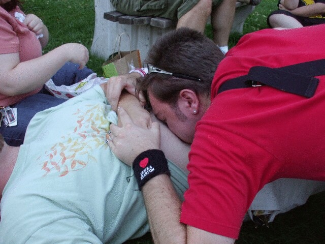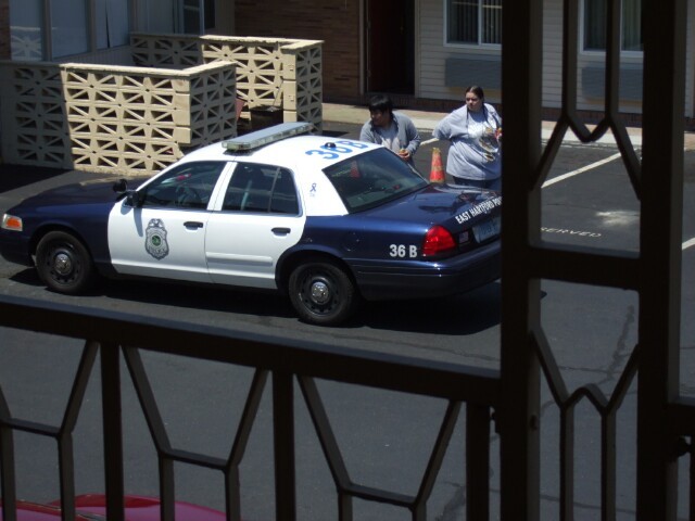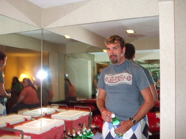 A historic convention first: KoL called the police on the hotel. Yes indeed, up is down, left is right, dogs and cats sleeping together... We ended up with a very polite and reasonable officer who listened to what we had to say and did what he could to resolve the situation. He told the manager on duty, "You normally have prostitutes and drug dealers in here, and you get some decent people, and you're giving them a hard time." He also asked us why exactly we chose this hotel of all places for our get-together, and even suggested some other places nearby that were of comparable cost and better quality. He stuck around for a while after we were able to get back into the room, and Princess Sunshine ended up chatting with him for about forty minutes about various things. I missed that because I refused to leave the room until we had all our stuff out of it, because I didn't trust them not to lock our key out again, which is in fact exactly what they did. I didn't have a card but Princess Sunshine did, and when we went down to the office the guy told us that he was refunding her money for the second day and told us to stay somewhere else Saturday night. Just so we're clear on this point... This is an Econo Lodge whose normal clientele are drug dealers and hookers, and Princess Sunshine and I got kicked out. She made some noise about it, but the guy wouldn't budge. He even said that they were full up and the room had already been reserved for someone else, which I believed about as far as I could shotput a Chrysler. I decided not to make a big deal out of the towel that smelled filthy or the door that didn't shut or the cigarette burns or anything else of the like. We decided to leave the premises for a while, since it was almost time for Cola Wars anyway. We didn't get the worst of the towels, though. Another person said she washed her face, and when she used the towel to dry her face she ended up getting grit in her eyes. Since I try to be even-handed, let me just add the one positive thing I have to say about this Econo Lodge: Our room's shower had great water pressure. Most hotels don't. That concludes my list of positive things about the hotel. Moving on... |