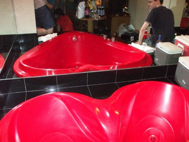 A red heart-shaped hot tub is much cooler in concept than in reality. |