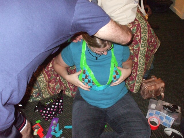 Wait, let's reserve judgement here for a moment... Yes, there was an effort to make a duct tape bra. It was successful, though I didn't take a picture of it being modeled. Perhaps others did. |