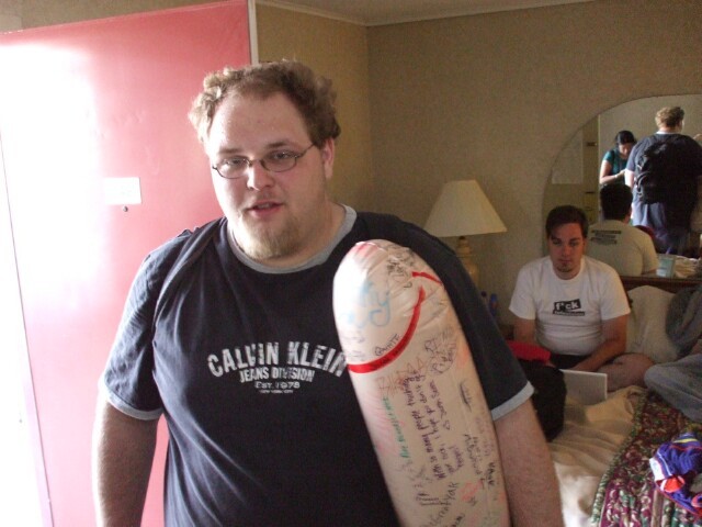 Karl Dark on Sunday morning, which for some reason is traditionally considered god's day, with his giant inflatable autographed penis. I am sure that if god actually existed, she would approve of this. |
