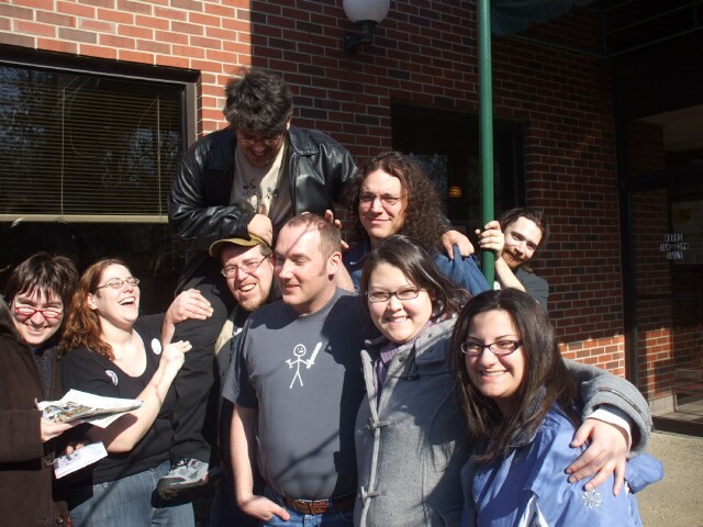 A happy mob scene outside Not An IHOP. Usually this is about the point where someone calls the police on us, but I have to admit I didn't hear even a rumor of police approaching us at any point during the meet (though if it happened on Saturday night I definitely would have missed it--I hear I was a wreck). I'm not sure that's a first, but I hope it's not a last. |