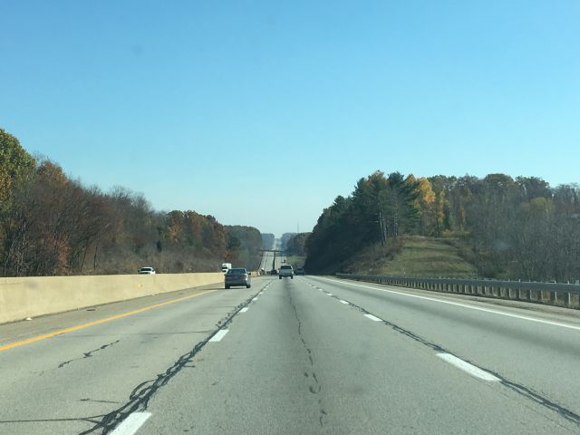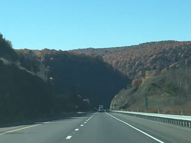 Eastern Pennsylvania still shows signs of autumn. As I headed west, the colors disappeared and the trees were mostly bare, which was far less picturesque, which is why those photos generally aren't included. |