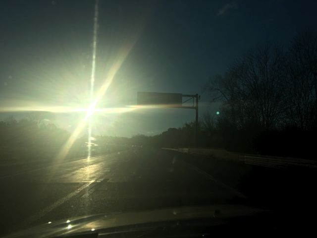 Driving into the setting November sun is not fun. This photo shows the "Welcome To Ohio" sign on Interstate 80. Picturesque, no? |