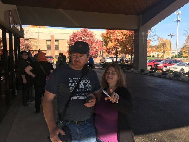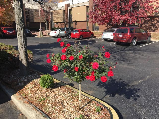 Classic November foliage. Don't worry, though, because climate change is a total lie according to everyone paid to say so. Having loaded my car up earlier, I exited the hotel with nothing but a box of Cheez-Its (white cheddar flavor), which I thought was an odd visual. Then Princess Sunshine pointed this flower out, so I took a picture as well because I am nothing if not a copycat. Then she wanted to get a picture of me and her fiancé together (I think because were arguably the two most freakishly-tall people at the meet) (or she wants to show her friends how far she traded up in a single photo), and I didn't want the Cheez-Its in the photo so I tossed the box over by this flower, only she went with a wide angle shot and got the box in the photo anyway. Foiled again! |