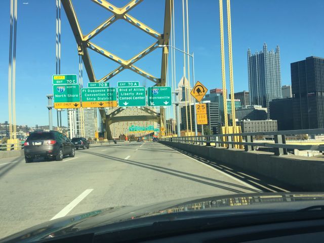 All zero of you who remember the similar photo from the KoLumbus 5 photoset will note that not only has Mellon Arena been renamed, but they resolved the signage problem with two lanes to stay on the interstate and three exit-only lanes on a road that only had four lanes. Progress! |