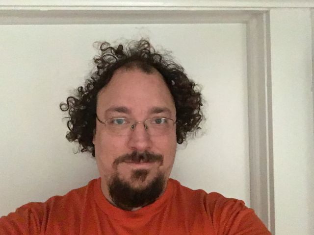 Me, less than twelve hours later. No, the difference here is not a haircut. This is me after a shower and a good night's sleep and a bad case of bedhead. |