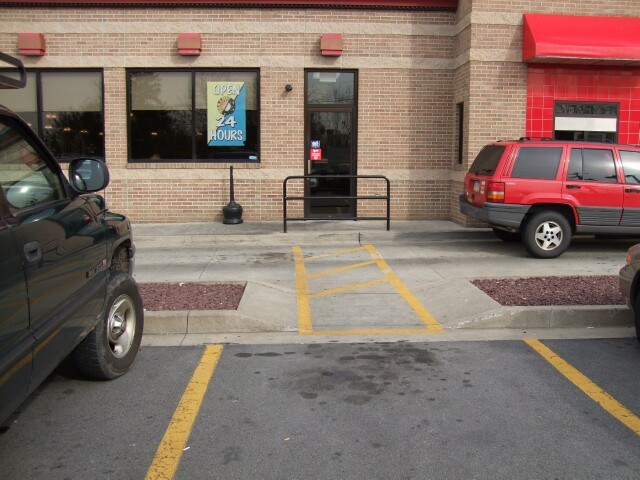Perhaps you've noticed I like to start with photos that aren't related to the meet. This photo was taken after I left home to head off to the meet, at a Wendy's near where I live. Would you consider this handicapped-accessible or not? I'm not sure we can even give credit for effort here. |