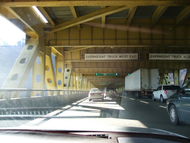 Overheight truck is probably already wedged solid, leading to a two hour backup on the interstate. |