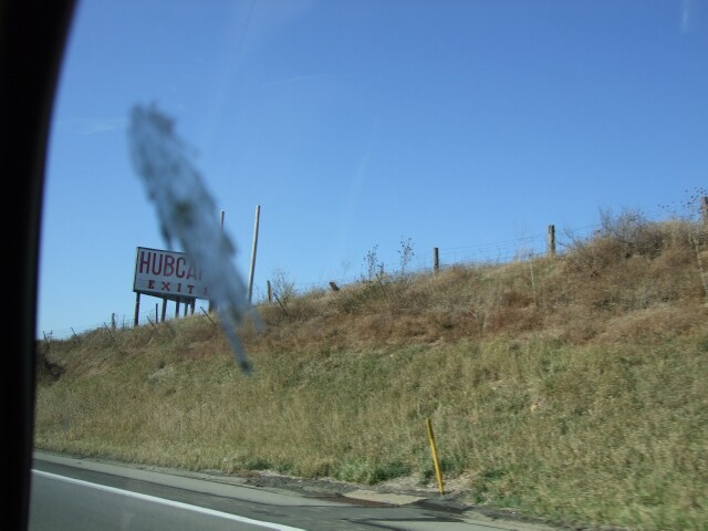 This sign mysteriously states "HUBCAPS, EXIT 1," which is funny. This photo of it is funny for a different reason. |
