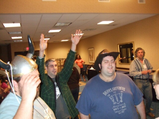 And what would a Kingdom Of Loathing meet be without Viking helmets, and, um dier_cire signalling touchdown, and, er, okay, I think this gag has gone as far as it can go. |
