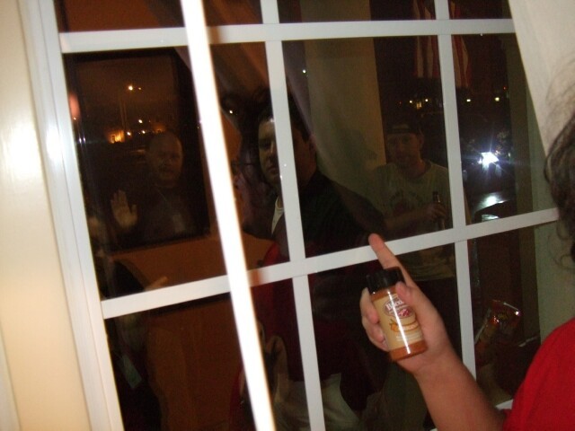 Jelloboi taunts people on the other side of the window with bacon salt. No one came zombie-like through the window to get the bacon salt, so all was good. |
