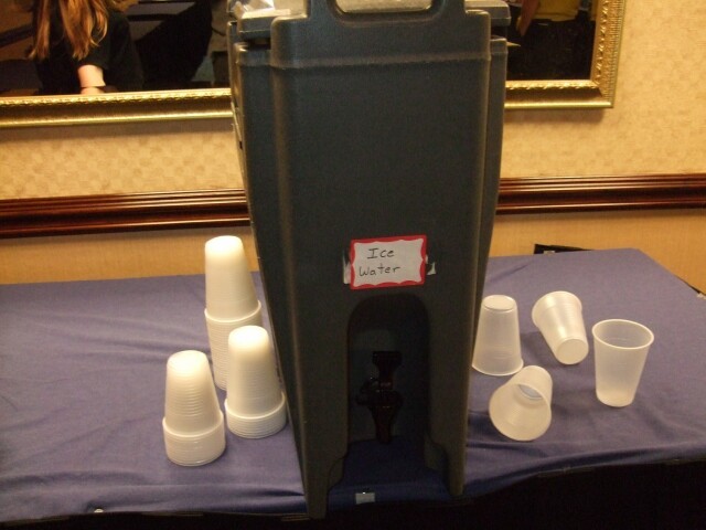 There was no ice water in the ice water cooler. |
