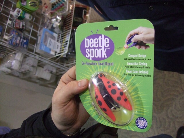 Look, it's not just any spork, it's a beetle spork! It's like a spork, only beetle-y! And it's got, y'know, wings, and, and... Okay, seriously, what the fuck. A beetle spork? This is pointless, and I don't care if it is certified fresh by Hogwild. I had to angle the camera a bit oddly to get the beetle spork level for the picture, so try not to focus too much on the background, or you'll get dizzy and fall down. It's happened to me four times already. |