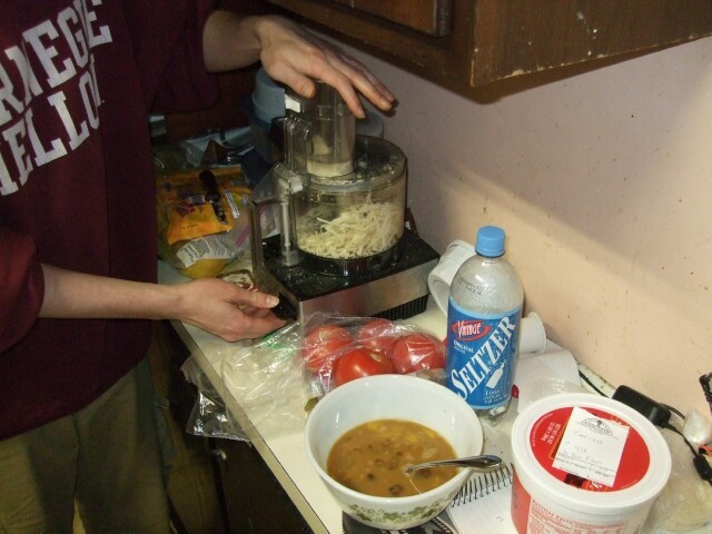My brother-in-law Mike and I helped my sister Roxanne make dinner. Here Mike cuts the cheese while I prepare a bowl of caramel vomit. Surprisingly, the dinner was very good despite our help. |
