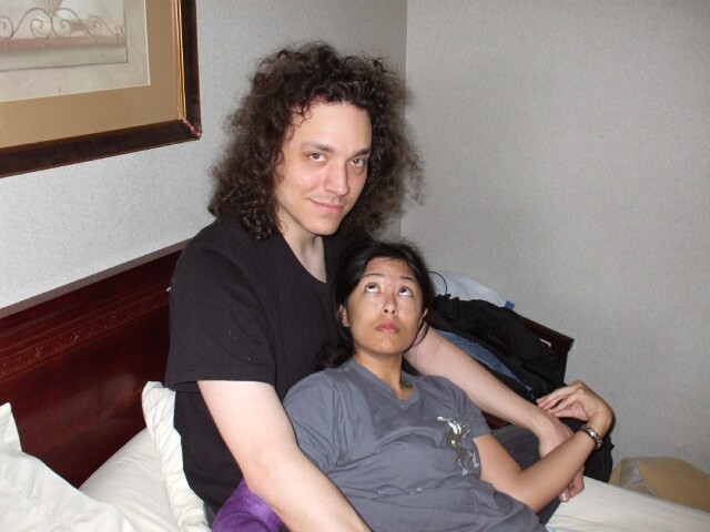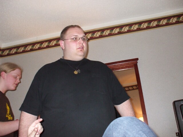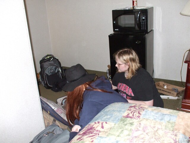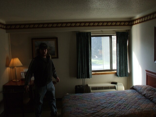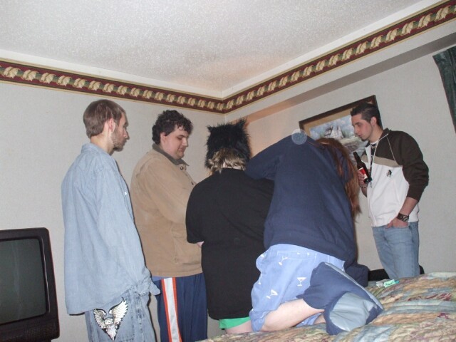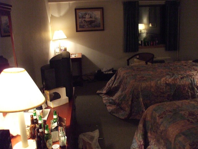 My first photo at the meet. Here, MrGreenSmiling can be seen (barely) in our hotel room, which was still presentable, unlike how it looked forty-eight hours later, after it got indoctrinated into the world of KoL. |