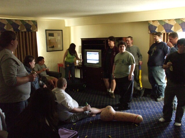 KoLers doing what they do best: Loitering and drinking. This was the only time I was in this room all weekend, so I did not sign the inflatable penis. And yet, somehow, life goes on. |
