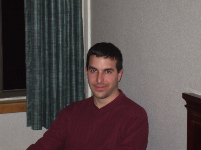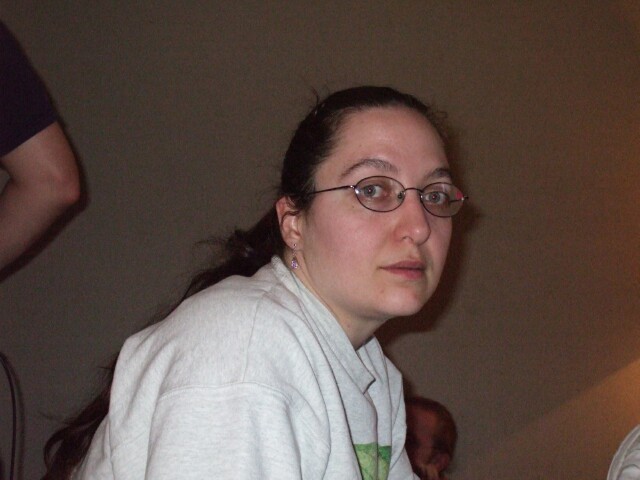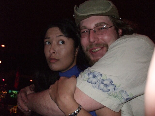 Hester_Prynne is a wonderful person and a lot of fun to be around, and she looks great when you catch her unaware, but for some reason, when she has time to pose for a camera, she's only a set of widened eyes away from achieving an unfortunate, creepy runaway bride Jennifer Wilbanks look. (I, of course, always look fine in photos, as you can tell from this page's fine selection of photos from the meet taken with my own camera, intended for my own website, and chosen based on my objective unbiased opinion on what photos are most representative of the meet, representativeness determined by the photo's value in Varjak Units, which measure my ability to come up with a smart ass caption for said photo.) Also she never returned MrGreenSmiling's room card, which we didn't realize until after she'd fled the state, so she can safely assume the Comfort Inn Commandos will be bursting in through her door any second now. Watch out for black helicopters. |