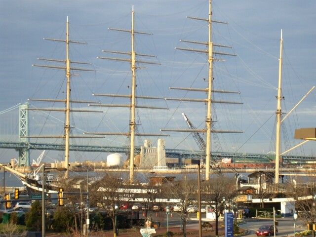 Little known historical fact: This particular ship was actually used during the American Revolution. It wasn't armed yet, and the cannons and whatnot were added later, but they put this ship at the mouth of the river and turned it sideways to block the river mouth and prevent the Germans from reaching and attacking cities located on the river. The Germans tried to overcome this by inventing the U-Boat, but they didn't have advanced metallurgy technology so they had to make the U-boat out of compressed cheese, and ultimately the ship's captain, named Jimmy, was able to sink it with his harpoon. True story. |