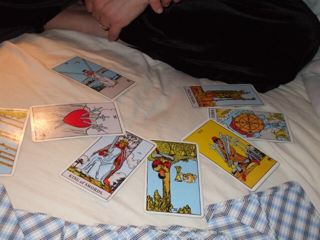 A tarot reading for Princess SUnshine reveals a metric fuckton of swords. Yes, not just a ton, not just a fuckton, but a metric fuckton! Do you have any idea how many that is? It's a goddamn lot of them, that's how many. (Actually, it looks like thirteen to me, but, um, well... That's a lot for a tarot reading. Right?) |