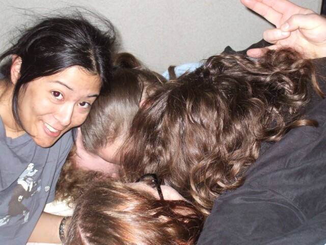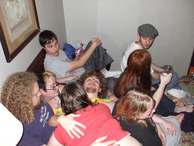 The cuddlepile continues. Karl no longer has metal rammed through his face. TechSmurf feels up Rage Tuba. Life is good. |