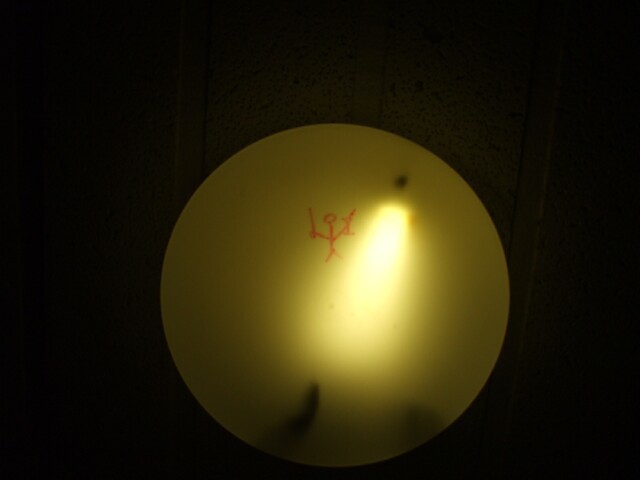 Some person committed an act of graffiti on the ceiling light in the hall. That so totally rocks. |