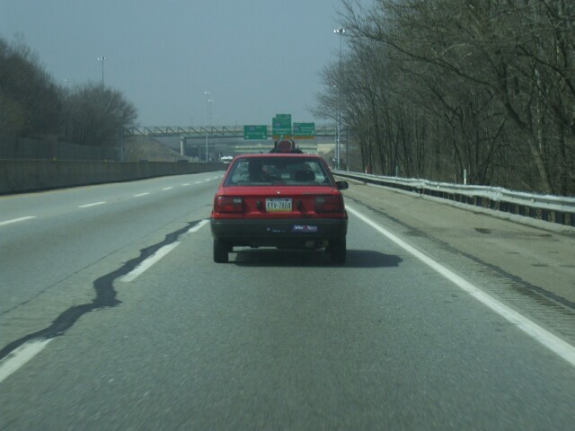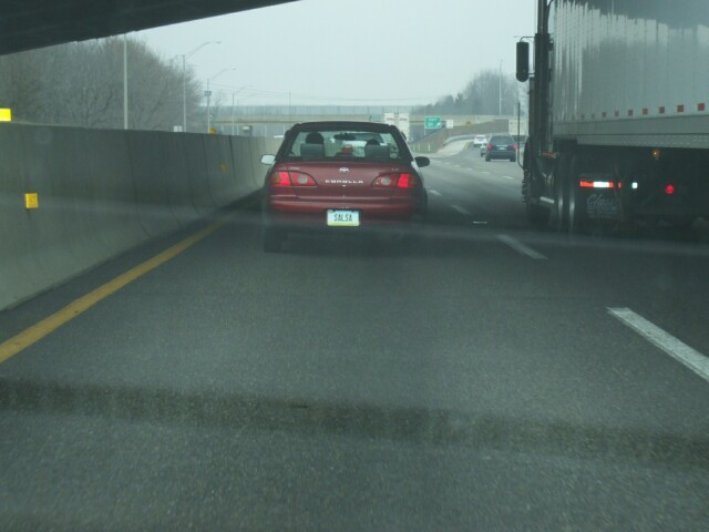 In case it's not clear, this car has a John Kerry For President bumpersticker on it, and the remains of another bumpersticker that was torn off. I wondered what the other one could have been that the owner felt the need to tear it off if they were willing to leave that one behind. It's kind of like people who say "Fuckin' A." What in the world could the A possibly stand for that you can't say it after you've just used the word "fuckin'." MrGreenSmiling suggested it was a Nader For President bumpersticker. That's a really good guess. |